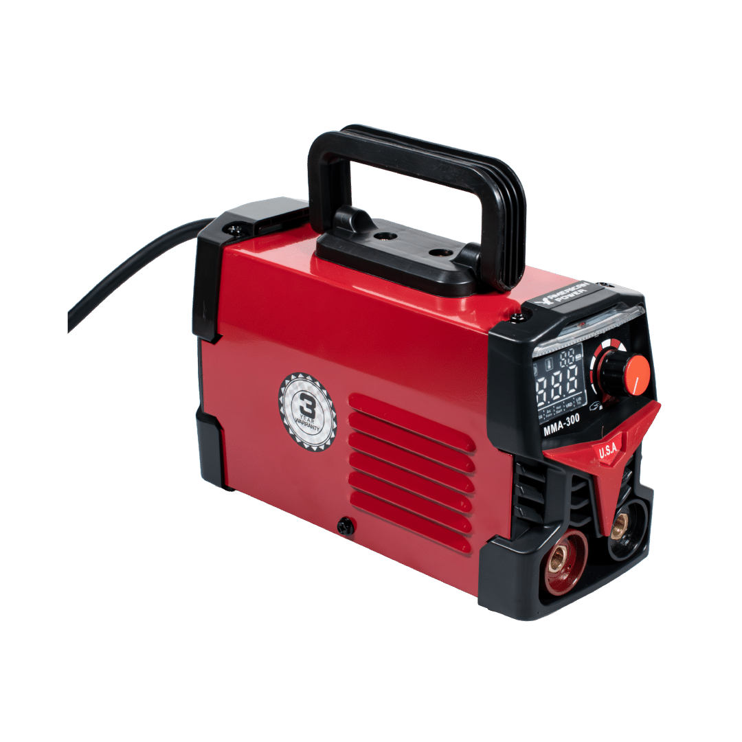 Inversor de Soldadura 300 MMA. Potencia industrial con la versatilidad de doble voltaje 110V–220V. Ideal para electrodos 6013 y 7018, ofreciendo un arco estable y profesional. Incluye kit completo con pinzas, electrodo, grata y careta de paleta. Potencia y control en tus manos.